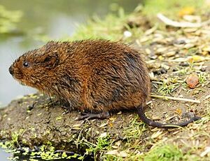Woelrat (arvicola Terrestris). De woelrat is geen rat, maar een woelmuizensoort en dat is aan het uiterlijk goed te zien. Het platte gezicht doet denken aan de verwante aardmuis en noordse woelmuis. De lichaamslengte van 130 tot 200 mm is er waarschijnlijkj de oorzaak van dat het dier zó vaak als (bruine) rat beschouwd wrordt, dat het zelfs in de naam terugkomt. De staartlengte is maximaal 135 mm en het wintergewicht schommelt tussen 120 en 190 gram. In de zomer wegen de dieren bijna het dubbele! Mannetjes zijn iets groter dan wijfjes en bovendien wat donkerder van kleur. De vacht varieert van bruingrijs tot diepzwart en de buik is geelachtig. De aanwezigheid van woelratten is makkelijk te constateren. Dit blijkt uit de aanwezigheid van hun holen in de slootkant en door de latrines die op de slootoever te vinden zijn.
