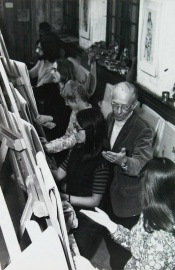 Minderhout geeft schilderles, foto: J. Sinke, 30 oktober 1970, ZB, Beeldbank Zeeland, recordnr. 50806