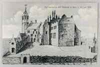 Het slot Ostende te Goes, zoals het er in 1743 nog bij stond. Nu rest alleen een deel van de kelders.