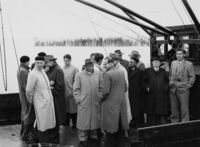 [[Bestand: | [[Bestand:Weer1.jpg|thumb|right|200px|bezoek Kamerleden; links, met hoed: Lein Mieras; tweede man met hoed is Willem Bom; man met baret en sigaret is Lein van der Have. Daarnaast het 2e Kamerlid ir.C.N. van Dis en Piet Verwijs. Op de achtergrond de weren van de ansjovisserij onder de kust van Bergen op Zoom (weervisserij)]] | ||