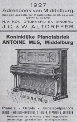 | Pianofabriek van A.A. Mes; Pianofarbiek Antoine Mes Middelburg 1884-1931. |