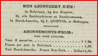 Voor emigranten van Duiveland was het zelfs mogelijk zich in de Verenigde Staten te abonneren op de vertrouwde Zierikzeesche Nieuwsbode, bron: Zierikzeesche Nieuwsbode 11 december 1854