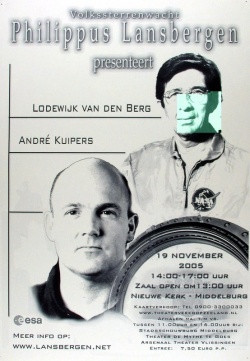 [[Bestand:Berg_20361.jpg|thumb|right|250px|lezing door Lodewijk van den Berg en André Kuipers in de Nieuwe kerk georganiseerd door volkssterrenwacht Philippus Lansbergen, 19 november 2005, affiche, ZB, Beeldbank Zeeland, recordnr. 20361]] | |||