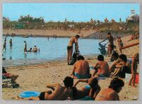 Recreatie bij Gorishoek. Strandje bij recreatieterrein De Pluimpot. Prentbriefkaart, ca. 1980. Bron: ZB/Beeldbank Zeeland, rec.nr. 4950