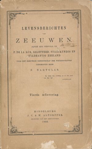 Levensberichten van Zeeuwen : zijnde een vervolg op P. de la Rue, Geletterd, staatkundig en heldhaftig Zeeland / voor het Zeeuwsch Genootschap der Wetenschappen uitg. door F. Nagtglas (1888-1893)