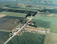 Anna Jacobapolder vanuit het oosten gezien met op de achtergrond links het gehucht (de) Sluis en daarachter het veer naar Zijpe. Foto: J. Midavaine/Slagboom en Peeters, 1976. Bron: ZB/Beeldbank Zeeland, rec.nr. 13240