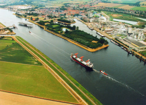 Peter van den Baar was de laatste burgemeester van Sas van Gent. Luchtfoto richting Sas van Gent en het kanaal Terneuzen - Gent. Foto: Slagboom en Peeters/Prov. Zeeland, afd. voorlichting. Bron: ZB/Beeldbank Zeeland, rec.nr. 130526