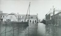 Het eiland Tholen werd in 1944 onder water gezet door de Duitse bezetters. Hier een foto van St. Annaland. Tijdens de inundatie stond aan de Ring het water bijna tot aan de vensterbank van de huizen, ongeveer 30 centimeter er onder. Bij eb kwam een gedeelte van de Ring droog te staan vanwege zijn hogere ligging. Bron: ZB/Beeldbank Zeeland, rec.nr. 30692