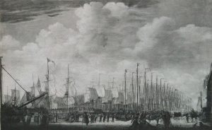De bemanning van de vloot in de haven van Vlissingen, gereed om naar Oostende over te steken. Schilderij E. Hoogerheijden en J. Schwartzenbach, Foto: onbekend, Bron: ZB, Beeldbank Zeeland, nr. 35324 | |