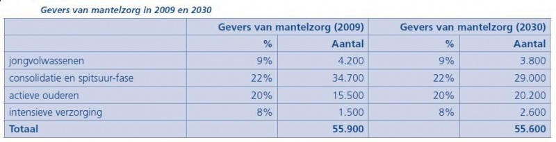 Op basis van demografische en maatschappelijke ontwikkelingen valt te verwachten dat het aantal mantelzorgers in Zeeland tot 2030 vrijwel constant blijft en het aantal ontvangers van mantelzorg stijgt met een kwart (van 19.400 in 2009 naar 24.300 in 2030). Het percentage alleenstaanden zal stijgen (zowel onder jongeren, als onder ouderen = vergrijzing), wat leidt tot een grotere behoefte aan mantelzorg.