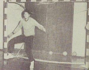 Ron de Jonge in actie als handbalkeeper, foto: archief PZC, Bron: Krantenbank Zeeland, PZC, 23 september 1980, pag. 12.
