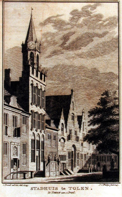 Stadhuis te Tholen. Tekening: C. Pronk, 1743. Bron: ZB/Beeldbank Zeeland, rec.nr. 902