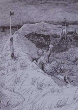 Uit de tekening wordt ook duidelijk dat de jongen die zijn duim in de dijk steekt, dit in werkelijkheid in het talud van het duin doet. Waarom Rhead Zoutelande desondanks zeer geschikt vond als lokatie voor de jongen lezen we in de beschrijving die Boughton bij het dorp geeft in Sketching Rambles:Down far below us lay the village. So far that had the waters swept over the sandy dike, the sea would have only reached its level, when it played around the tail of the weather-cock of the gray old churchtower. Vervolgens sloot hij af met een alomvattende vrees voor het wassende water rondom hem: We felt deadly oppressed by the prevailing seriousness of the place.[4]