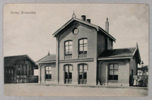 Station Arnemuiden, ca. 1920. Oudens was tussen 1885 en 1893 stationchef in Arnemuiden (Prentbriefkaart). Bron: ZB, Beeldbank Zeeland, rec. nr. 652. | |