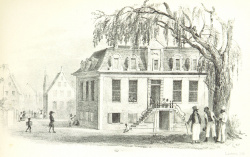 Adriaan Francois Lammens was president van het Hof van Justitie te Suriname. Op de prent het Hof van Civiele Justitie aan het Plein in Paramaribo. (P.J. Benoit, 1839). Bron: Wikimedia Commons. | |
